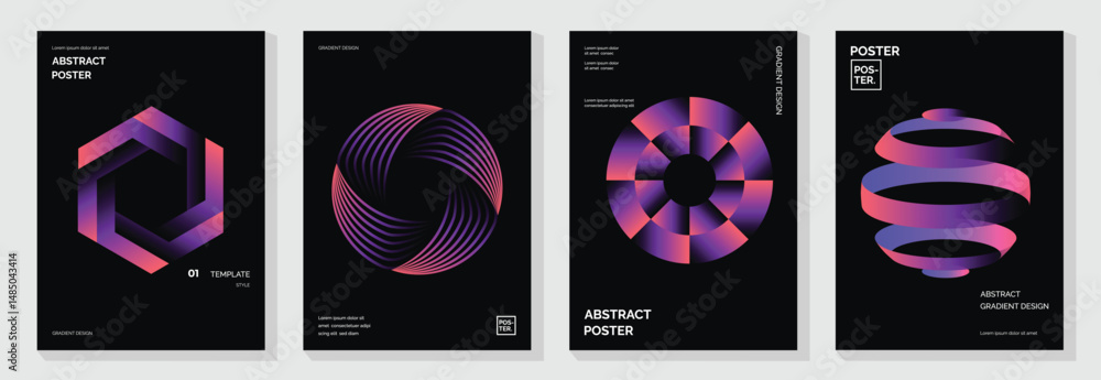 Plakat - Modern gradient poster background vector set. Cover template with vibrant perspective geometric prism shapes, line. Ideal design for social media, cover, banner, flyer..