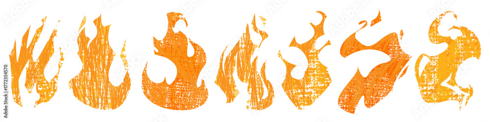 >Plakaty>Wybrane motywy - zobacz więcej !>Rafa koralowa>Hand drawn fire icons set isolated on white background. Vector cartoon illustration of abstract orange and yellow flame shapes, street art crayon or chalk graffiti, grungy punk tattoo design element