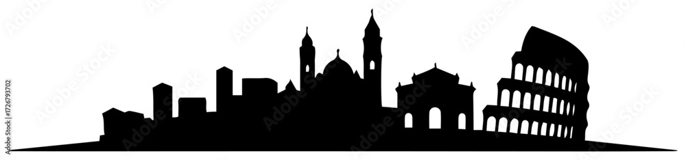 Plakat - Rome skyline silhouette with Colosseum and St Peter’s dome – iconic Italian city landmark logo illustration.