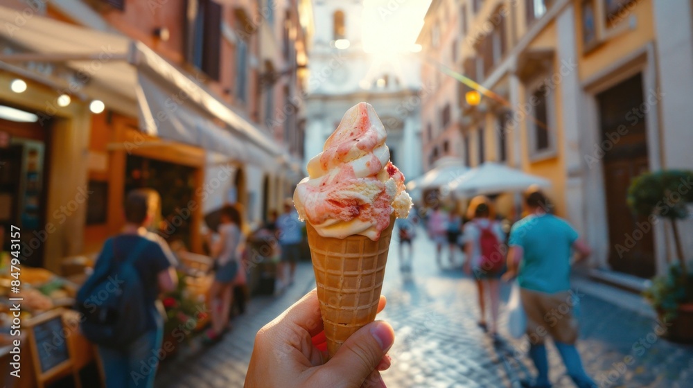Plakat - Close-up of ice cream on the streets of Rome..