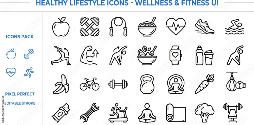Plakat - Outline vector icon set of healthy lifestyle, fitness and diet.