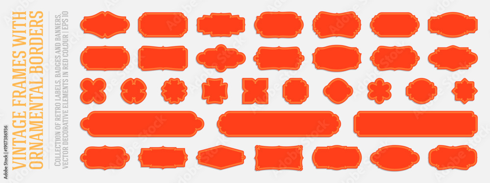 >Plakaty>Wybrane motywy - zobacz więcej !>Samoloty>Сollection of red vintage frames with gold decorative wicker borders, Set luxury wedding retro labels, banners, Royal frames in asian style, Elegant sticker and invitations, Isolated vector symbols