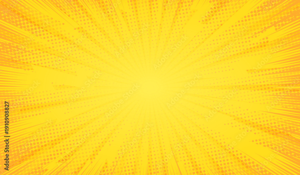 >Plakaty>Wybrane motywy - zobacz więcej !>Sport>Comic background. Yellow background in pop art comics style. Cartoon thunder lightning. Game show. Funny book page. Fun dot popart pattern for sale. Sunburst bubble. Starburst bg. Vector illustration